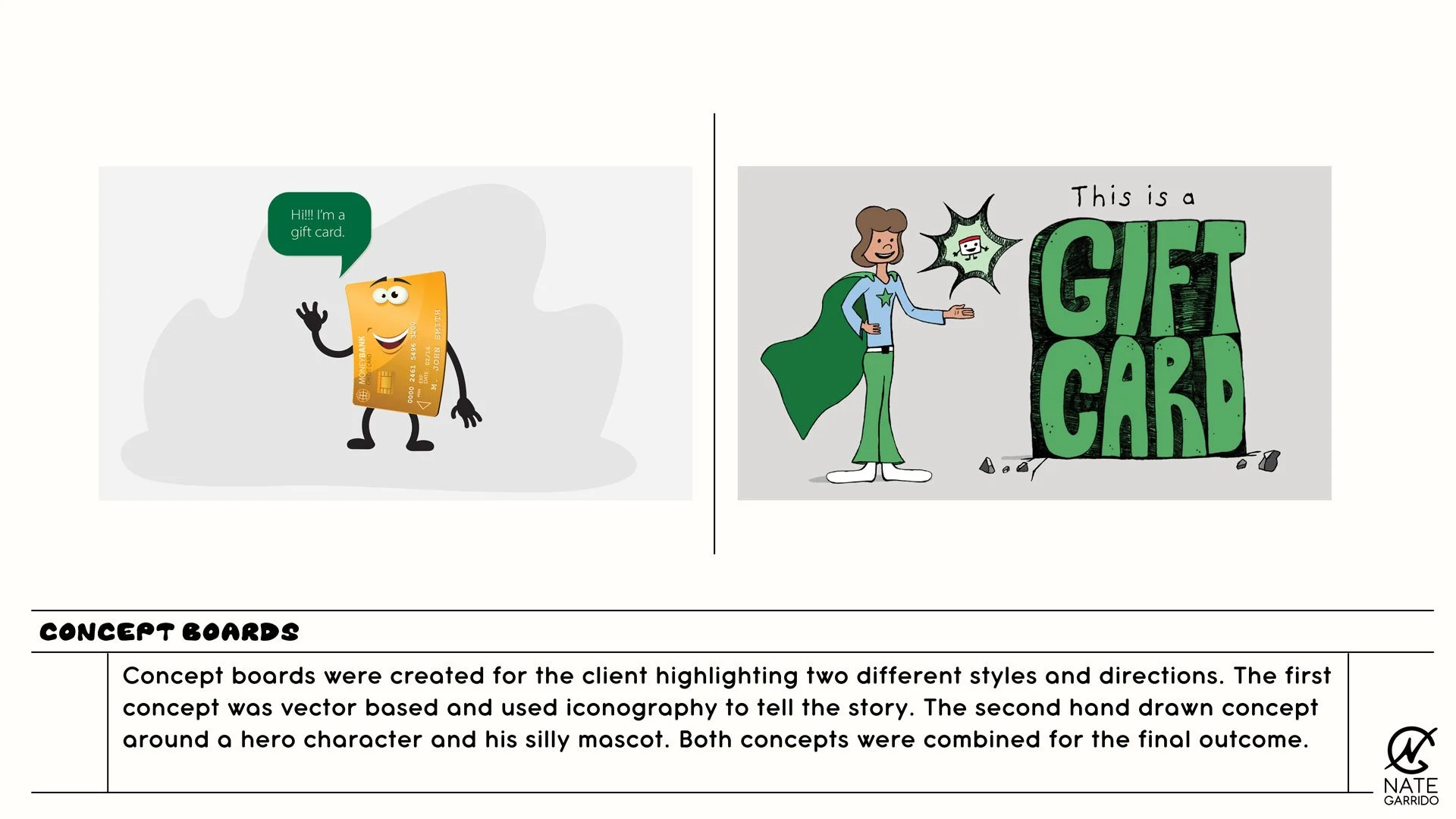 A concept board is a visual starting point of the creative process and is used to describe the artistic direction of a project. Two concepts were presented to the client prior to scripting & storyboarding. They were created to show aborad direction and approach to the story being told.