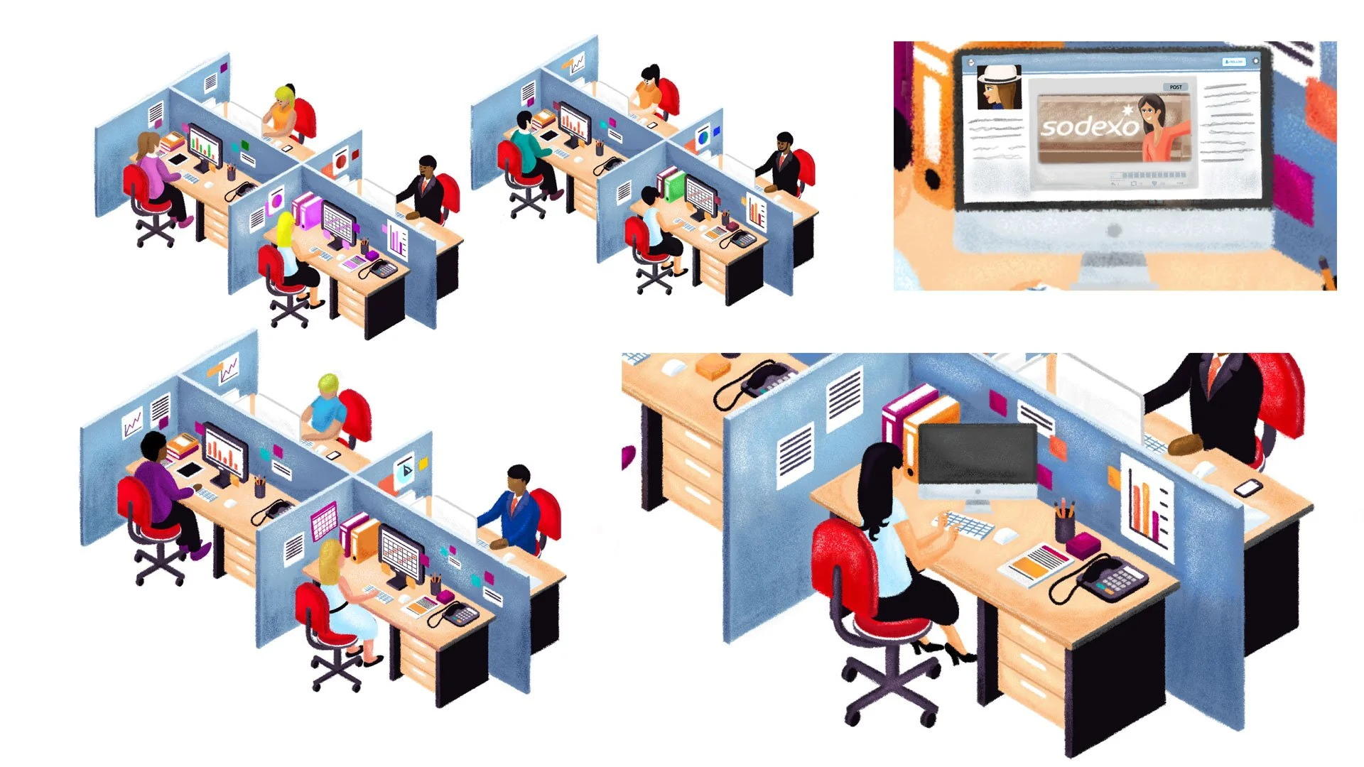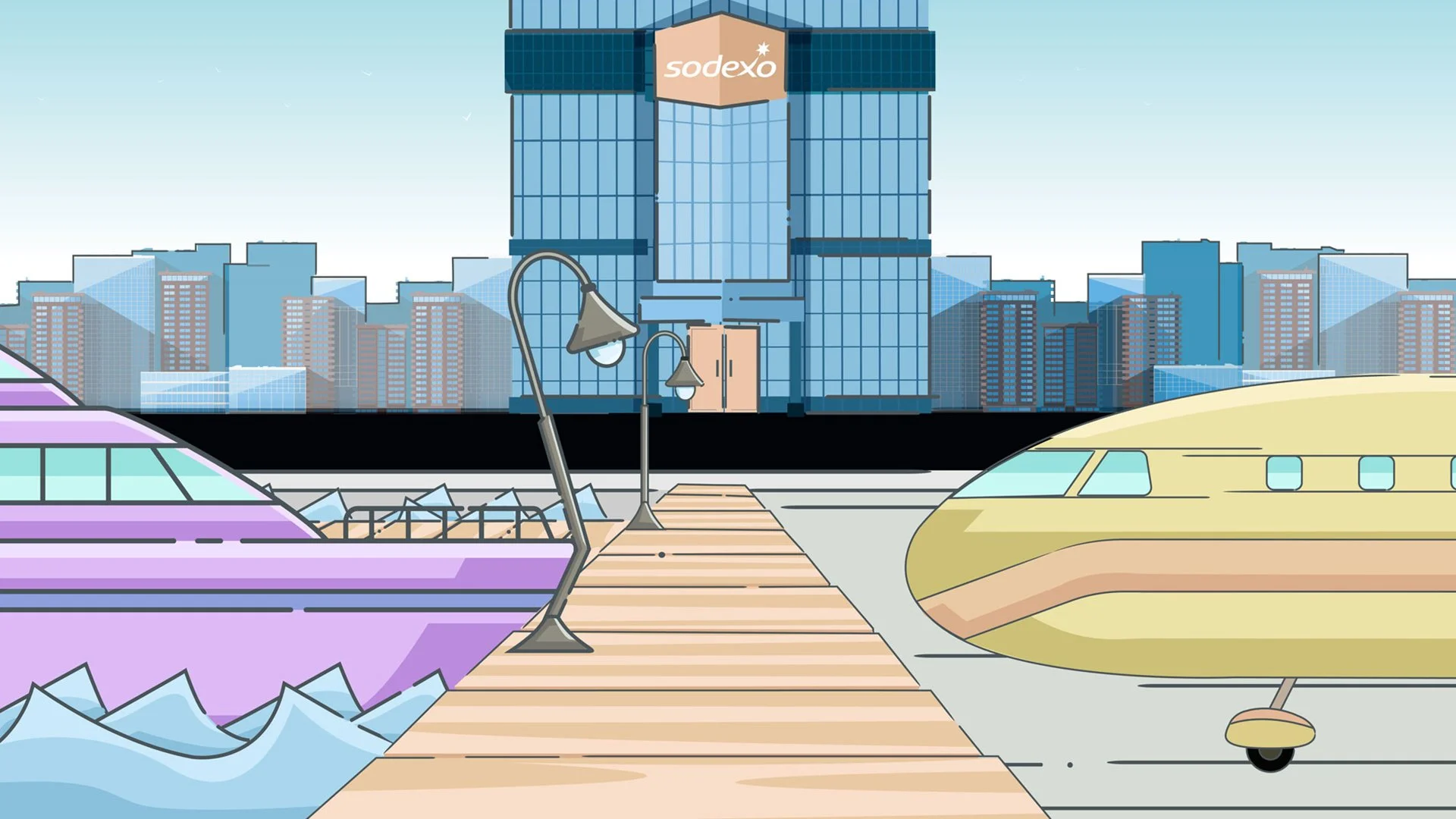 Sodexo is a French food services and facilities management company headquartered in a suburb of Paris. Sodexo is one of the world's largest multinational corporations, with 420,000 employees that represent 130 nationalities and are present on 34,000 sites in 80 countries. The objective of the project was to create an animation highlighting 2017 workplace trends in "The Migratory Workplace". The video is the main focus of a digital strategy campaign, aiding views to their annual report/website.