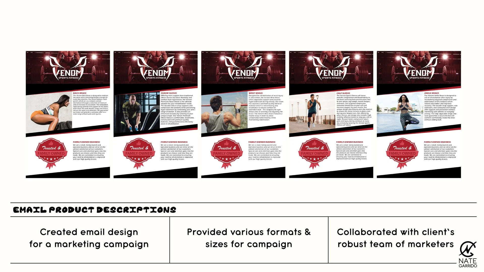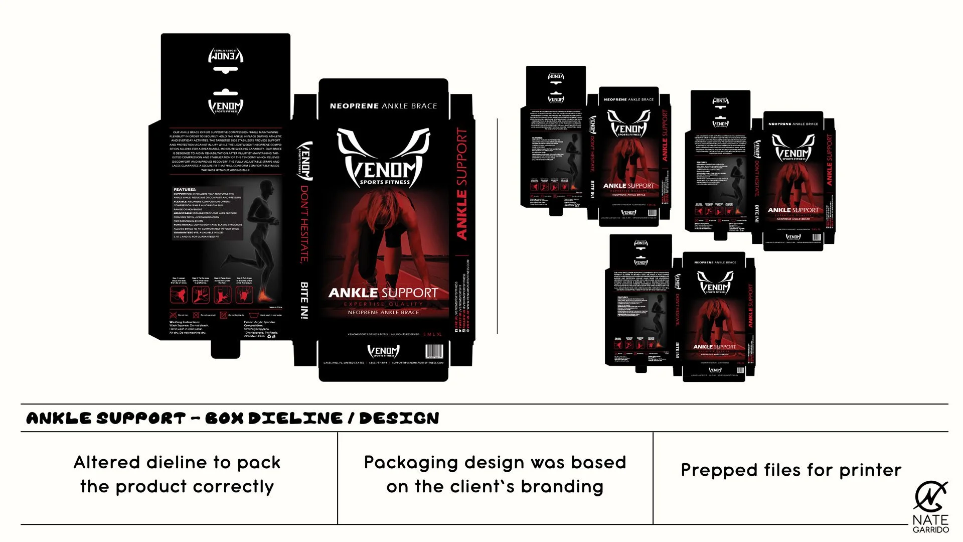 Venom Sports Fitness is a small online company in the Fitness Equipment business. The majority of the projects included the same objective: design packaging, shoot product photography, create imagery for social media & stationary while maintaining/expanding the brand’s existing aesthetic.